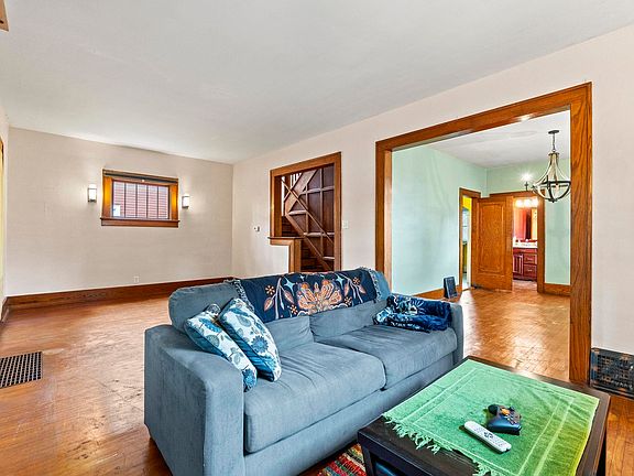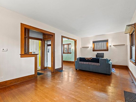 This charming 3-bedroom, 2-bathroom home perfectly blends vintage appeal with modern conveniences. It features original hardwood floors, natural woodwork, paneled windows, and built-in storage! The kitchen boasts granite countertops, a glass subway tile backsplash, and ceramic tile flooring, with stainless steel appliances included. Both bathrooms have been refreshed with modern fixtures, vanities, and countertops, yet maintain the home's classic charm. There are 3 spacious bedrooms upstairs. The basement provides ample storage space. Additional perks include an enclosed front porch and a detached garage. Situated near the River Greenway, downtown, shopping, restaurants, and schools, this home offers both convenience and character.