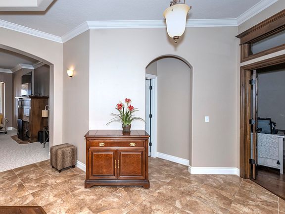 Listed by Phyllis Howell w/Bridges Realty. 2110 Ranchview Ct. Step into this amazing house and you are drawn to the beautiful wood work, Plantation Shutters, wood blinds. Formal Dining, Large Family room w/brick fireplace w/gas logs. The kitchen has amazing custom alder wood cabinetry with granite surface. The center island is great for prepping and has a sink and disposal. Adjoining this is a spacious eating area. The guest bedrooms have walk in closets and share a full bath with tub/shower, again with alder cabinets and granite. The inside utility room has a sink and working area along with built ins. Th Master Suite consist of large bedroom with trey ceilings and more great windows. Bath has tiled walk in shower and jetted tub. The walk in closet is a wonderful size. Outdoors looks like a park setting with many trees and beautiful flower beds as well as a standing bed for more plants. Surrounded by privacy fencing and a storm shelter. Three car garage with attic floored storage. Water softener and Osmosis system. HOA Dues $500.00yr. Call today to take a look.