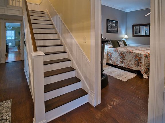 Beautiful, newly painted, Southern Gem on a corner lot. This immaculate 3 bed, 2 and 1/2 bath historic home has a spectacular wrap around front porch and two car carport with storage area. Inside, every room is spacious, features real hardwood floors and has large windows. Downstairs offers a 1/2 bath, formal living room, den, dining room, master bedroom with bathroom and 2nd bedroom. The kitchen displays lots of cabinets, an island, and breakfast area. Upstairs has a third bedroom, full bath, huge walk in closet and additional storage room. The attic offers plenty of space for extra storage. The backyard features a patio and fully fenced yard for the kids or fur babies to run and play. This beauty is conveniently located within walking distance of downtown. Bring the family and make memories.