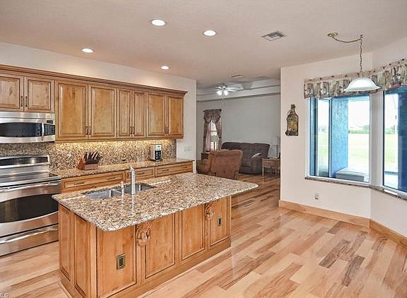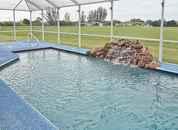 HUGE HALF ACRE SITE...PLENTY OF ROOM TO SPREAD OUT. This is the 3 Bedroom, 2 Bath home you have been waiting for. HUGE SOLAR HEATED POOL AND Spectacular Water Feature! Built in 2004 with 2256 Square feet of living space...including a SEPARATE FAMILY ROOM! Move-in IMMACULATE condition. Beautiful Wood-like Upgraded Flooring and Vintage Hickory 5" Baseboards. Owner invested over $100,000 into upgrades in this home. HURRICANE RATED WINDOWS. Upgraded, High Efficiency Air Conditioning System. Totally remodeled kitchen; Granite Counter Tops, Stainless Steel Appliances, Under Cabinet LED Lighting and 42" Custom Cabinetry. Be sure to watch the VIRTUAL TOUR and look at the Aerial Photos. HUGE HOMESITE! All city utilities are IN and ALL ASSESSMENTS HAVE BEEN PAID. Put this home on your short list...Owner wants offers!