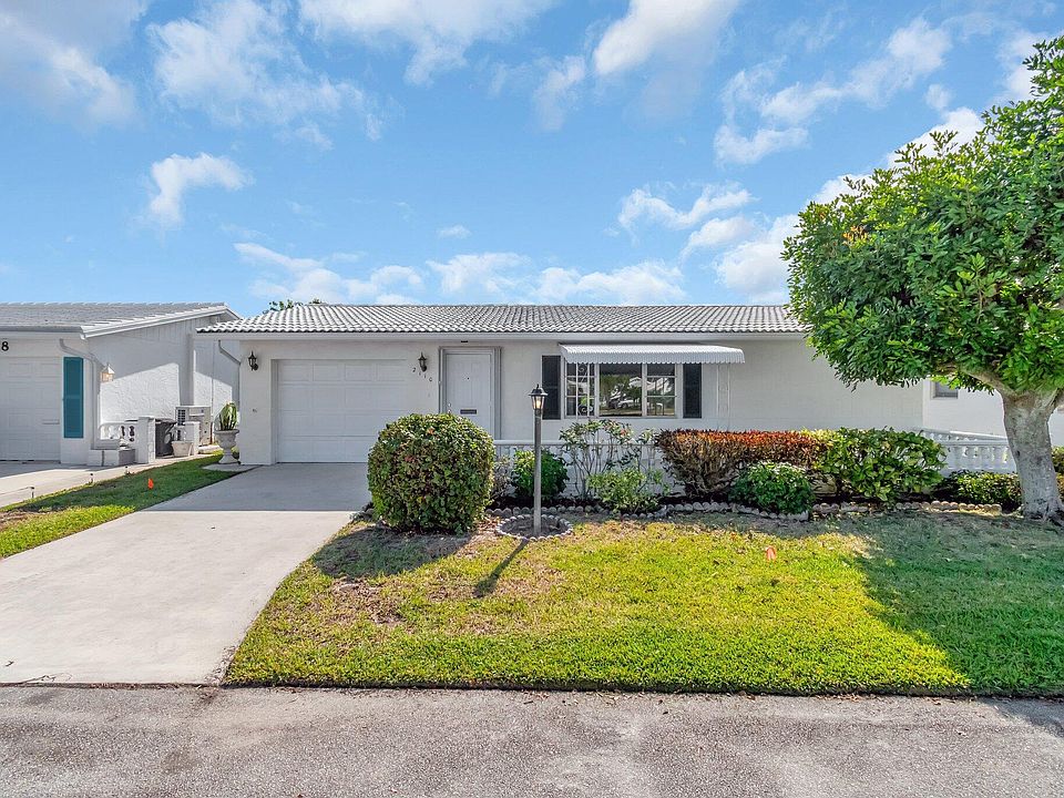 Perfect opportunity to make this home your own interior design! Sought after Challenger model 2/BR, 2/BA. 1-car garage, hurricane shutters, lovely front porch with an awning for shade. Close proximity to the ocean, lots of shopping, I-95, Bethesda Hospital, downtown Delray Beach, PBI & Ft. Lauderdale airports. Community offers a putting green and clubhouse.