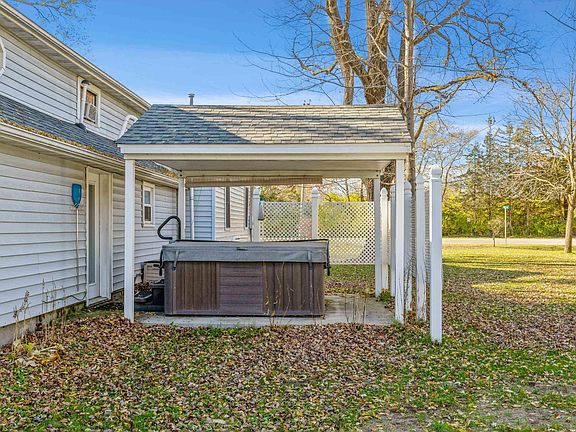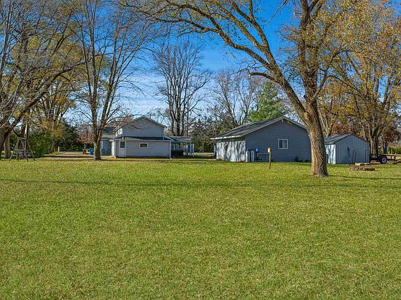 Wonderfully updated home on a secluded one acre lot with wooded views. This home features 2 large master bedrooms with full baths and walk in closets and a 3rd bedroom with a half bath. Large living room with gas fireplace, bamboo flooring and walkout to the covered patio with hot tub. Talk about a gorgeous kitchen! Updated cabinetry, granite counters, tile flooring and beautiful backsplash. Check out the pictures of the newer appliances, stove features built in air fryer and is wi-fi enabled. The spacious main floor master bedroom with totally updated bathroom also has a second 9x9 room which could make a great office or nursery. Main floor laundry. The 1 acre property includes a second oversized 2 car garage with propane heater. A sand point well which is dedicated to the sprinkler system. A 1 hole personal golf course, 2 small utility sheds and a second entrance to the property off the side street. Basement has rec room area with a half bath. Roof was new in 2023.