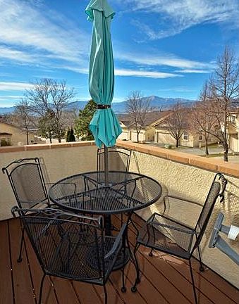 End Unit W/Great Natural Light+pikes Peak Views. Remodeled!quartz Countertop In Kitchen. Master Bed+second Bedroom Or Office On Main Lvl. No Maintenance Living! D20! Hardwood Floors,Plantation Shutters,Composite Deck,A/C,Attached 2 Car Garage,Master Suite W/Huge 5 Pc Granite Bath+jacuzzi Tub. Gas Fireplace W/Upgraded Stacked Stone,Laundry Chute.clean Move In Ready. Huge Family Room In Basement,Open Layout.peaceful,Well Maintained Community,Walking Distance To Chapel Hill Mall,Restaurants,Easy Walk To 21c Library And Parks.,Alarm Will Be Turned Off For Showings. Alarm System Stays With The Home,But Buyer Will Have To Activate Thier Own Monitoring Service. Internet Is Currently Provided By Century Link. Buyers Have Choices. Tv Is Provided By Direct Tv. Satelite Dish Will Stay. Buyers Do Not Have To Use Direct Tv But That Is Who Currently Services The Unit Now. Exterior Insurance For Roof And The Exterior Is Covered Under The Hoa Fees. Buyers Only Need To Get Interior Walls And Inside Insurance Coverage. The Home Is In Meticulous Condition. Better Than New! Loved And Cared For Home With Many Upgrades. Newer Paint,New Refrigerator,Newer Dishwasher,Ugraded And Added A Sit In Jacuzzi Jetted Tub In Master,With Granite Remodeled Master Bath! Added Gorgeous Stacked Stone Floor To Ceiling Decor On The Fireplace In The Living Room. Great Location,With Easy Access To The Air Force Academy. Centerally Located With Easy Access To Uccs,Air Force And Military Bases,Excellent Rated Academy School District!