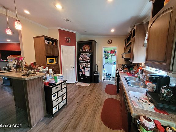 CURRENTLY UNDER CONTRACT, SELLER WILL CONSIDER BACKUP OFFERS. Looking for a place in the country but not too far from town? This is it! Spacious 3/2 dwmh offers an open floorplan with a kitchen with plenty of storage, pantry, and dining area. Living room has a wood burning fireplace. Split floorplan has to master bedroom with a walk in closet and master bath with double vanities, garden tub, and separate shower. Additional 2 bedrooms on opposite side have large closets. Hall bath has tub/shower combo. Sits on 1+/- acre on a paved road. Fenced in back yard. Outbuilding with power. Showings are by appointment only on Wednesday, Thursday, and Saturday.