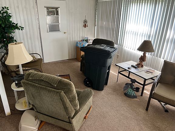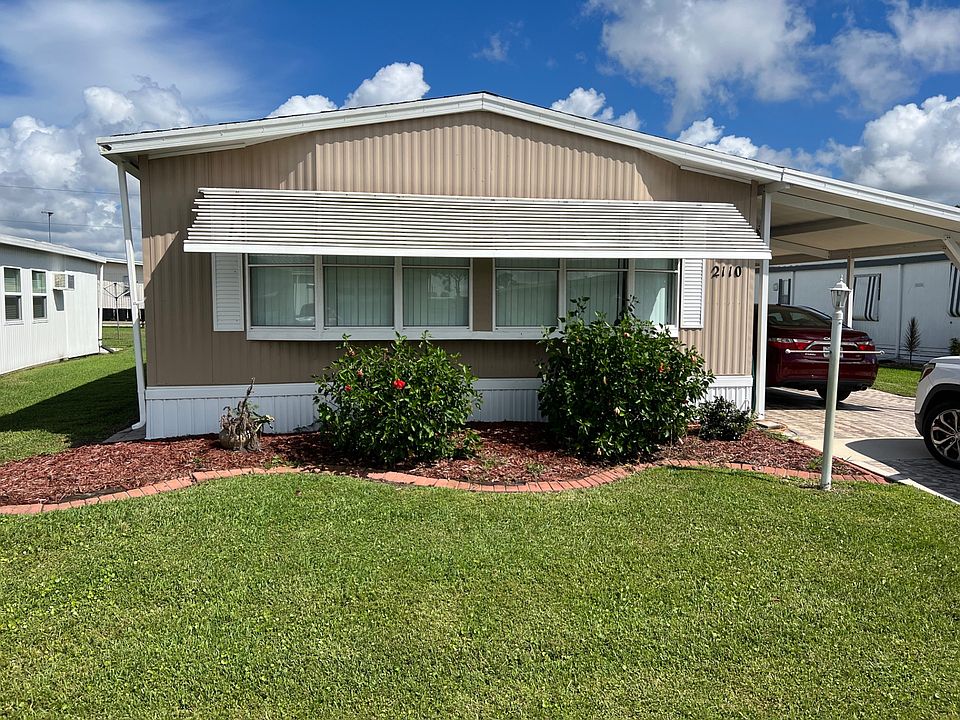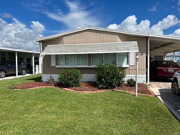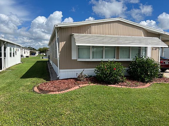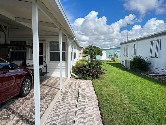 This Lovely home in the desirable community of Woodhaven Estates, won't last long. Fully furnished TURN KEY. The enclosed front Florida room opens in the the living room and dining area. Laminate flooring, with a carpet like rug & comfortable furniture makes room great for reading, visiting with a friend or just having a quite time relaxing. Ahh Perfect! The Galley kitchen has everything you need at your fingertips. Lots of storage and nicely painted cabinets. Cabinets full of glasses, dishes, pots and pans ready for your first dinner. Your spacious dining and living room area has plenty of room for entertainment and is graced with a lovely fireplace to set a mood. The lovely master bedroom , queen bed, large walk-in closet and master bath with walk in shower, The guest bath boast double sinks and tub/shower combination. The very spacious guest bedroom has king size bed, 2 chest of drawers, night stands with still space for more. The large Lanai is carpeted and furnished as well. Attached is a huge storage shed/laundry room. Won't run out of storage space in there. Golf Cart is included has newer batteries. AC new in 2019 New roof 2018. All listing information is deemed reliable but not guaranteed and should be independently verified through personal inspection by appropriate professionals. Listing company cannot guarantee or warrant the accuracy of this information or condition of the property. The buyer assumes full responsibility for obtaining all current rates of lot rent, fees. Additionally, the buyer is responsible for obtaining all rules, regulations, pet policies, etc., associated with the community, park, or home from the park manager.