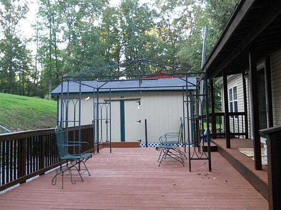 20134539-MOVE IN READY this well maintained lake view home offers plenty of summer shade! 3br/2ba with living rm., den w/wood burning fp, study, built-in computer station & vaulted ceiling. Separate shower & garden tub w/walk-in closets off of master bedrm. Kitchen offers plenty of cabinets, pantry, a sit down island, ref., dw, cook top, built in oven & microwave. Enjoy the 14 x 30 freshly stained wood deck off of the dining area. App rox.. 10 x 20 storage bldg., decking w/gazebo & double detached carport 10' high. Asphalt driveway. New roofing with 25 yr. shingles. REDUCED to $107,900.