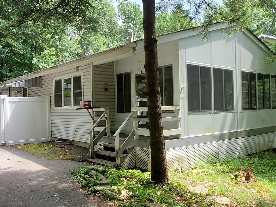 Handyman special close to Kalahari Water Park, Camelback Resort, future Pocono Springs, shopping, restaurants and major interstates. Bring your toolbox and make this roomy rancher your very own Pocono getaway. Screened porch adds additional living space, detached 1 car garage, storage shed, all tucked away behind tree lined front yard. Community amenities include beach, lakes, outdoor pool, clubhouse and road maintenance. Use for your self or investment opportunity. Community Sewer $214 Quarterly. Schedule your showing today!