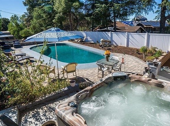 Welcome to your new family ranch horse property with room to grow. This lovely home has way too many great features to list and is a truly must see. This home sits on 1.5 acres of useable level land and has been beautifully upgraded and remodeled. The country kitchen is the heart of this home and has an open floor plan to the dining and family room complete with a wood fireplace. Each of the three bedrooms are equipped with it's own ductless heating and air unit. The home has an indoor laundry room off the 2nd bath with built in shelves. Sliding glass doors off the dining room lead to one of the decks to view the wide open spaces that surround this charmer of a home. The second covered deck located off the laundry room is the perfect place to look over the expansive patio and the pebble tech pool with a stand alone hot tub. The over 10' deep pool was remodeled in 2018 and has a copper ionization system that almost completely eradicates the use of harsh chemicals. A new pool house was added which includes a game room, internet, A/C and 1/2 bath right off the pool and hot tub area. Outdoor living is not complete with out all the added features including an oversized 4 Stall barn with a newer roof, new paint, covered feed storage area, two tack rooms and a workshop. Each of the 4 stalls are 12 x12 and each have their own pipe corral outside turn outs. Next to the barn is an approx. 80 x 40 arena area along with a chicken coop, a pot bellied pen and tortoise enclosure. The home currently has 6 horses, dog, pot belly pig, a 145 lb tortoise, 4 chickens and 3 cats with room too grow and a soccer and trampoline play area. The level 1 1/2 acres has room to park your horse trailers, motor homes, 5th wheels and a tractor. Home is 1,850 sq ft but tax records show 1,584 sq ft. The home was added on by previous owners with no known permits. SOLAR YES this home has a newer roof and SOLAR included the solar to be paid off at close of escrow. Home is on septic and propane, water...