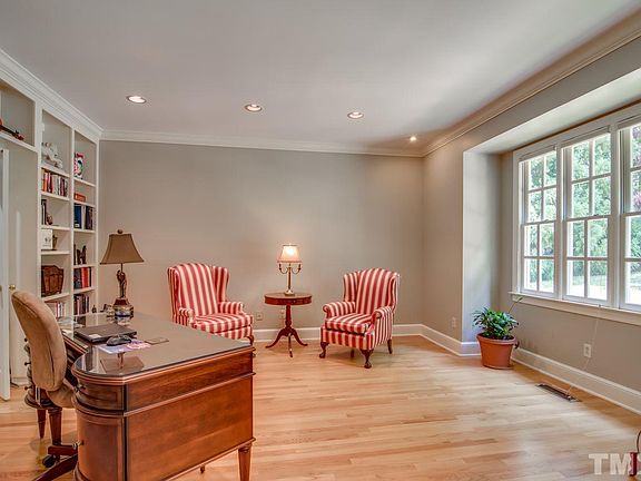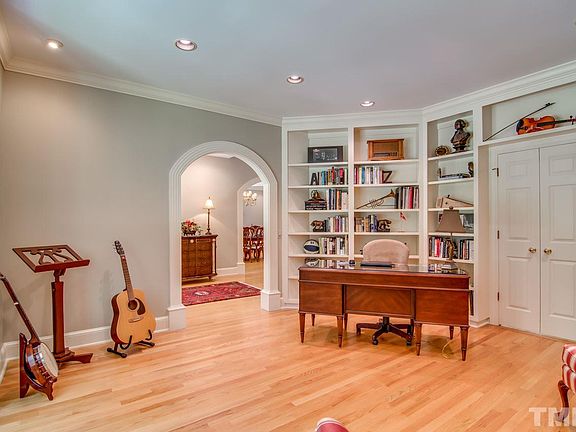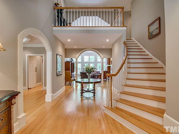 Gorgeous brick home in Treyburn! Large family room: vaulted ceilings, BEAUTIFUL fireplace, & wet bar. Dedicated office. Chef's kitchen, SS appliances, gas cooktop, Subzero, Lrg center island, storage space. Lrg dining room. 2 BEDROOMS on 1st floor includes Master w/ tub & sep. shower. 2nd fl loft area & 2 more bedrooms w/ en suite baths. Landscaped back yard has it all - deck, private pool w/ fence, patio w/ pergola, & breathtaking views of Little River Reservoir. Unfin bonus. 3 car garage. Putting Green.