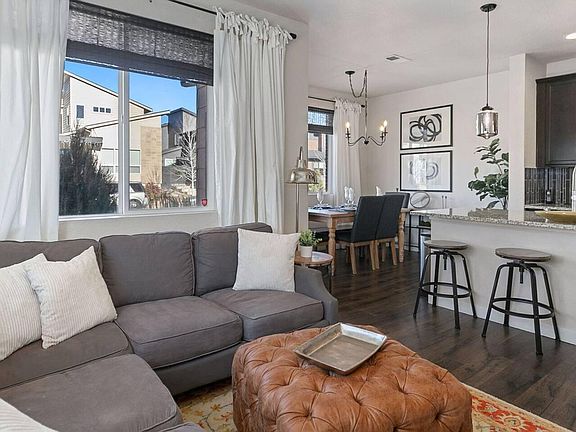 This completely upgraded 3-bedroom, 3-bathroom end unit features an open floor plan with an abundance of natural light and 9' ceilings throughout, making it easy to feel at home. The gourmet kitchen is a highlight, boasting a spacious center island with dining area, granite counters, stainless appliances, gas stove, 42" cabinets, custom backsplash, and under-mount lighting. The apartment includes a patio/deck conveniently located just steps from the kitchen. The upper level houses a master suite with a walk-in closet, private balcony, and a 5-piece bath. Two additional bedrooms, another bathroom, and a flex space complete this level. An oversized two-car garage and a large laundry room add to the apartment's convenience. To make your arrival easier, a starter welcome packet is provided, including toiletries and cleaning supplies. Please note that any supplies beyond this are up to the guest to replenish as they are not restocked. Located in Midtown, just five miles from downtown Denver, the neighborhood offers community gardens, a dog park, and restaurants. It is well-connected by a regional trail system, with the Light Rail station (Pecos Junction Station) just 1.5 miles away, and easy access to highways. Move-in ready. Please be aware that cleaning supplies are not stocked due to safety issues. The apartment provides ample space and natural lighting, ideal for setting up a home office environment. However, specific office furniture and equipment details are not provided.
