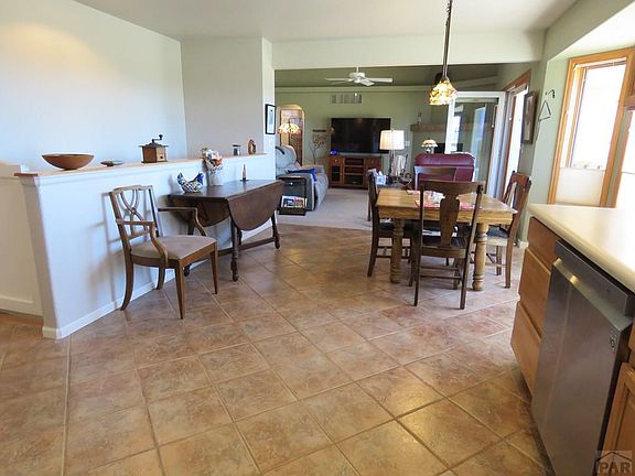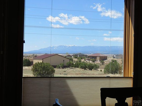 This meticulously maintained one owner home has a wonderful view of the Sangre de Cristo range, Greenhorn Mountain, and the Spanish Peaks. The kitchen eating area has a bay window. The kitchen also has lots of cabinets with recessed lighting and under cabinet lighting. All appliances stay including the washer and dryer. The living room and master bedroom have a vaulted ceiling. A covered deck is just off of the living room. The master bedroom is on the east side of the home to greet the rising sun. This home has plenty of natural light. The accordion blinds and window treatments are included. In addition the home is wired for sound in the living room, kitchen, and the master bedroom. The basement has a 9 ft ceiling, a radon mitigation system, plus a French drain around the foundation. A workbench, a deep sink, and the hot water heater are in the garage. There is also an RV dump by the garage. The walls are also 2 x 6 construction. Mature cedar trees are in back of the property that is home for quail, rabbits, birds, and deer that pass through. This home is ready to move into. Stop by and have a look!