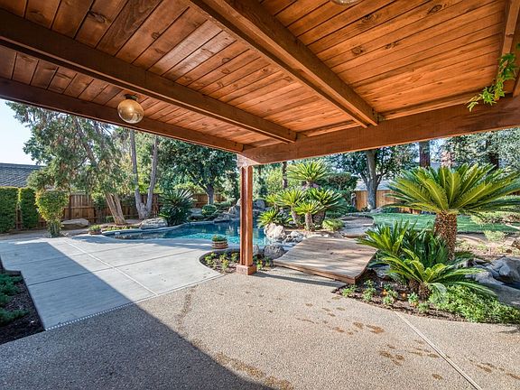 One of a kind in NW Fresno! This uniquely aesthetic home was designed by world renowned architect, Art Dyson, in 1979 and built by owner/builder as his personal residence these past 40 years. The home exudes a timeless and functional style with lots of glass and picturesque windows that bring the outdoors in. The home features vaulted ceilings in the family room and master suite, aggregate flooring in entry and dining. The kitchen overlooks the family room which features an exposed wood ceiling, brick fireplace and awalk behind wet bar for entertaining. The park like rear yard has a gorgeous newly resurfaced pool and spa, new concrete and mature trees, including original Monrovia sago palms. This home has been very well cared for and still maintains the aesthetic appeal of its time. A must see! Bath count differs from tax records. Buyer to verify.