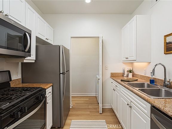 Refreshed with brand new luxury vinyl plank flooring throughout. Welcome to the highly sought-after Watermarke Plan 1 residence—move-in ready! This inviting home offers a spacious one-bedroom layout, complete with a walk-in closet, a spacious bathroom, a dining area, a living room, and in-home laundry, all within approximately 648 square feet. Located on the ground floor, this upgraded unit features granite countertops, fresh white paint, and newer Whirlpool stainless steel appliances. It also includes one assigned parking spot. The Watermarke Community provides newly renovated, five-star resort-style amenities, including an on-site concierge, a fitness center, a business center, a library, an elegant game room and bar, a private movie theater, a chef’s kitchen, three pools with poolside cabanas, four spas, a children’s play park, and basketball and tennis courts. Conveniently situated near the 405 and 55 freeways, Fashion Island, Corona Del Mar Beach, and the award-winning University of California, Irvine. (Refrigerator, washer, and dryer are included.)