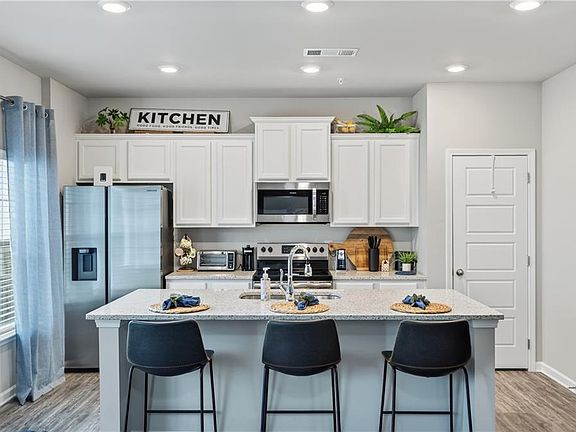 This exquisite 3-story town home offers a perfect blend of style comfort and functionality. The first floor features a convenient and spacious single car garage and additional ground-level storage closet, providing secure parking and secure entry into your home. The main living area located on the 2nd floor is designed for both entertaining and everyday living. You will find a spare bedroom/office with access to a full bath for guests. The heart of the floor is the open concept living space, where the bright and airy den flows seamlessly into the gourmet kitchen. The kitchen is a chef's dream, highlighted by a large island that offers a perfect spot for meal prep, casual dining and gathering with friends. Privacy and luxury await on the top floor. that includes the primary suite and private 3rd bedroom with its own ensuite. Primary bathroom comes with double vanity and large walk-in closet. The large laundry room provides ample storage space and utility functions. Easy walking distance to museums, and public parks (The Piedmont Bank Amphitheater) where weekend events and concerts happen. Minutes from KSU and many pedestrian friendly places nearby for shopping and dining. This listing is based on being unfurnished, however, there is an option for fully furnished for $4000