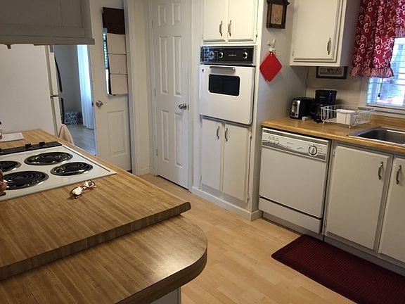 Warm and inviting cottage feel home with white washed country kitchen, built in oven and cook top stove, breakfast bar with caf lighting, beautiful honey colored laminate floors, great pantry for additional storage, large laundry room with overhead storage and two linen closets plus washer and dryer, spacious master bedroom with attached master bath, walk-in 60" stall shower with dual seats, linen closet, china sink and window to capture light, living/dining area great for entertaining, spacious covered deck to relax and enjoy coffee, large low to no maintenance yard, premier 55+park with great activities.