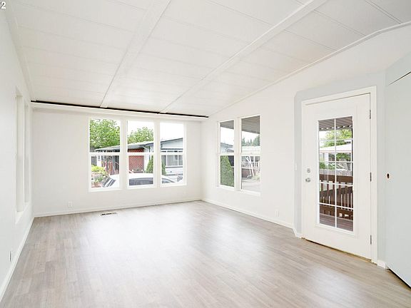 With bright, fresh and modern updates it is easy to envision this home as your own! 2 bed 1 bath, vaulted ceiling living room plus a secondary den space for your enjoyment. Corner lot with large lawn strip and privacy. Bring your gardening tools as this home has a shed and clean-slate landscaping ready for planting! New dishwasher and range with W/D hookups off the kitchen. Great 55+ community is pet friendly, amenity rich (incl. pool) and convenient to I84 & Troutdale/Gresham entertainment!