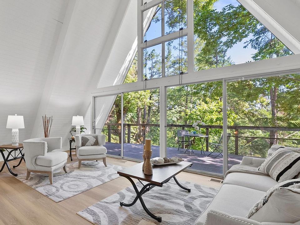 Private A-frame retreat, abundant charm! Nestled off the beaten path, privacy beyond a gated entry. Upon entry be dazzled by the wall of windows showcasing a great view and natural light! Perfect with easy access to transportation while still being in nature. Primary Suite also with lovely views and sliding glass door to balcony, a perfect spot for a morning tea, yoga, or any of the many other ways to enjoy privacy in nature. 2 en-suite beds on the main floor, 2nd level is loft w/natural light, vaulted ceilings, many electric outlets along walls accommodate a spacious home office, workshop, family rm, or other! Great indoor/outdoor living, connect with nature in a way few homes can offer. Usable land could be garden area, ADU or other. Confirmed internet avail. with Surfnet. Oversized garage. 10.3 miles to Downton Los Gatos while sand and surf is just 15 mi. away! Hiking and Biking trails nearby. Top schools, 9 miles to Los Gatos High. Great as primary residence or a vacation home!