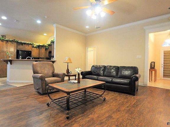 Don't miss this incredible 2004 built home in Bullard ISD. As you enter you will immediately love the huge living area with wood-look floors and fireplace. The open concept kitchen features tons of cabinet space, breakfast bar and breakfast nook. Split from the other bedrooms, the huge master is a fantastic retreat after a long day. The master bedroom has plenty of room for a large bedroom set and sitting area. In the master bath there is a separate soaking tub and shower. Two additional bedrooms offer plenty of room for guests or a growing family. You will love the outdoor space in this home. As you exit there is a covered back patio with extended patio space for outdoor entertaining. The backyard is surrounded with trees to offer plenty of privacy. On the back of the lot there is a workshop with overhead door and its own covered patio. The home also features a whole house water filtration system. Come see all that this home has to offer!