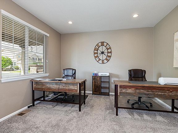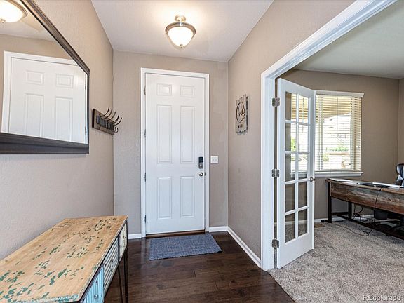 Move in ready Hemingway model features four bedrooms and a loft upstairs plus two more bedrooms in the finished basement and a 3 car garage! Popular floorplan hosts a main floor study with french doors that offers space to learn and/or work from home and a generous great room that flows into the dining area and gourmet kitchen. Wide plank engineered hardwood floors compliment the white cabinets with crown molding and the slab granite countertops coordinate perfectly with the subway tile backsplash and stainless steel appliances that include double ovens, gas cooktop, microwave and dishwasher. The large island is perfect for prep or entertaining with bar seating plus the walk in pantry provides additional storage. Step out to the covered patio and imagine spending time in your thoughtfully designed backyard. Beautiful stone fence offers privacy and the low maintenance turf provides water savings! Cobblestone paver patio to the west and secondary slab to the east offer flexibility for your outdoor living space that you will enjoy without having a house directly behind. At the top of the stairs is the large loft that gives you flexibility for an additional living area, study or game room. Master suite hosts a five piece bath with granite countertops, tile floors and a walk-in closet. Secondary bedrooms utilize a full hall bath with dual sinks and granite countertop plus the laundry is conveniently upstairs. Finished basement comprises the sizeable rec room that is perfect for enjoying movies, games or exercising. Two additional bedrooms could also be used as a secondary study or hobby room and there is an additional 3/4 bath. The Copperleaf community features the Arboretum pool and clubhouse, parks, trails and open spaces, located in the Cherry Creek School District, convenient to shopping and restaurants.