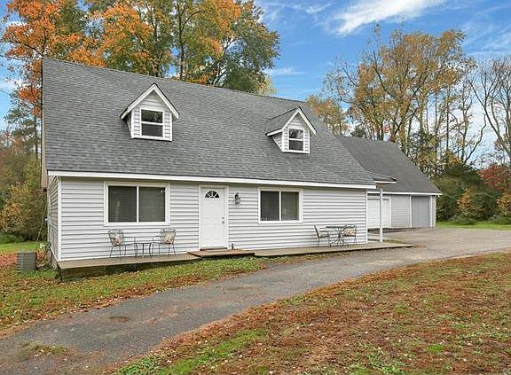 Totally renovated cape on 1.5 acres in Cosby school district! New roof, new siding, new replacement windows, all new flooring! Open floorplan downstairs features huge family room w recessed lights, renovated eat-in kitchen with appliances, bar area, custom cabinets and pendant lights, formal dining room with tray ceiling and a full renovated bath with ceramic tile, new light and vanity. Spacious laundry room with new laminate wood floor. Upstairs features a fantastic master suite. Master has vaulted ceiling, a private exterior balcony, walk-in closet and private bath with ceramic tile floor. 2 additional bedrooms and a full bath with jetted tub, tile surround, ceramic tile floor, new vanity and lights also featured on second level. Recessed lights, freshly painted throughout. Basement storage. AND features screened porch and a huge detached 2.5 car garage with room for a car lift and storage above! 1.5 acres of privacy but still so convenient to Midlothian, 288, West Chester, etc. Zoned agricultural.