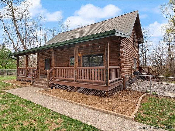 Tucked away on 4.62 acres of a beautiful blend of cleared and wooded land, this 3-bedroom, 3-bath log home blends rustic charm with flexible living spaces and modern comfort. The first floor features two spacious bedrooms and a full bathroom, with an open-concept layout that flows into a vaulted-ceiling loft overlooking the main living area. The loft space offers the perfect spot for a home office, playroom, or game room. Upstairs, you'll find a private bedroom with direct access to a covered second-floor deck, plus another full bathroom. The walkout basement adds even more living space, complete with a third full bathroom and plenty of room to create a rec room, guest suite, or additional bedroom. Step outside to the expansive back deck system—two covered levels plus an open ground-level deck that wraps around an above-ground pool, perfect for entertaining or relaxing. The front yard includes a fenced-in area, ideal for pets or play. A detached 3-car garage offers even more potential, with a framed and ready-to-finish apartment above, complete with its own private side entrance—perfect for a guest suite, rental opportunity, or home studio. Conveniently located just minutes off SR 60 in Borden, Indiana, this one-of-a-kind property offers privacy, space, and endless possibilities. Don’t miss your chance to own this unique slice of country living!