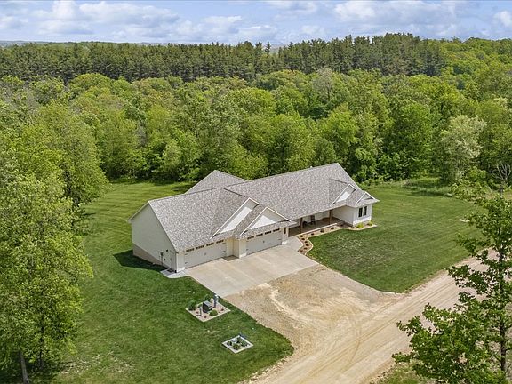 Your dream home awaits! This exceptional custom-built home is nestled on over 4 acres of tranquil land, backing up to the serene Wapsipinicon State Park. From the charming front porch to the natural light flowing throughout, every detail of this home has been thoughtfully designed. The heart of the home is a Pinterest-worthy kitchen featuring quartz countertops, a spacious walk-in pantry, and a convenient grocery door for easy drop-off from the garage. Gather around the cozy fireplace with custom built-ins, or relax in the sunroom, offering breathtaking views year-round. The primary suite is a true retreat, with an ensuite bathroom that includes heated tile floors and a beautifully finished walk-in shower, along with a large walk-in closet that provides direct access to the laundry room. Downstairs, you'll find a large family room with walkout access and a flexible bonus space ideal for a home gym, office, playroom, or future theater room. Ample storage throughout ensures plenty of room for all your needs. The zero-entry 4-stall garage, approximately 1,500 sq ft with two floor drains, offers convenience and space for vehicles, outdoor gear, and more. With its blend of space, style, and functionality in a peaceful setting, this home is truly a must-see—don’t miss your chance to make it yours!