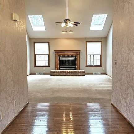 On the main level you will be greeted inside the main entry with a large foyer to meet your guest, to the left is a large dining room large enough for a dining room table of 8 for the holidays. Directly ahead is the open floor plan leading to the living room w/ fireplace and is nicely finished with two large skylights for natural light year round. The kitchen has contemporary style kitchen and finishes, granite counters, newer appliances, walk-in pantry & eat in kitchen. The kitchen pours out to a jumbo sized rear porch nicely accessorized with large roll up awning to extend the indoors for those large gatherings, or just to have your morning coffee!