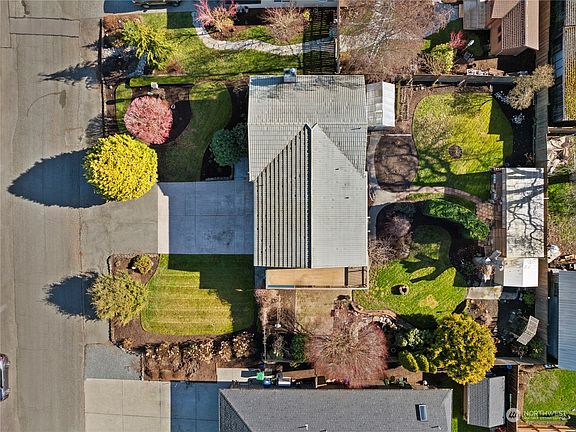 Old Town Anacortes home in a quiet neighborhood boastings this large beautifully landscaped yard. Limited water views to the West of Guemes Channel and Cypress Island to watch boats going by and beautiful summer sunsets over Cypress. Lots of upgrades including, Concrete tile roof, New heat pump in 2018, Leaf Guard gutters, Stamped concrete driveway, New outside paint 2023. Spacious 2 car garage is currently a one car garage with workshop but could easily be converted back to a two car garage. Check out this amazing back yard with quality green house, tool shed, coy pond with coy, duck pond & chicken coop. Just imagine living in Old Town close to beaches, stores, restaurants and short ferry ride to Guemes Island.