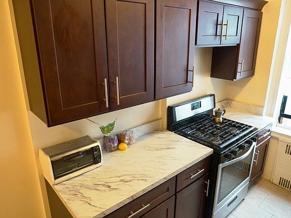 Each bedroom has amazing closet space the smaller room fits a queen bed comfortably with a double-door closet & the larger room fits a king bed w/ two separate closets. The kitchen has tons of cabinet and counter space and has an adjacent breakfast nook. Additionally, the detached living room is big enough for a separate office & living space! It is just .2 miles from the Q,B at Church Ave (arguably the fastest train in Brooklyn) and just 35 minutes from Union Square!