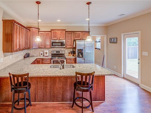 Enjoy one level living in this Craftsman style home featuring a split floorplan layout. Home boasts hardwoods throughout main living areas & carpet in bedrooms. Welcome guest inside from your covered front porch into your foyer & Great Room. Great Room features a woodburning fireplace & vaulted ceiling. Kitchen is open to the breakfast area & features an eat-at bar, granite countertops, custom cabinetry, tile backsplash, & stainless steel appliances. The Master Suite is privately tucked away & showcases a tray ceiling, tile stand-alone shower, garden tub & his & her closets. Bedrooms 2 & 3 are located on the opposite side of the house and share a bathroom. This home is zoned for Auburn City Schools. Additional features include: crown molding throughout most of the home, security system & irrigation system. **Seller offering a $1000 carpet allowance with an acceptable offer**