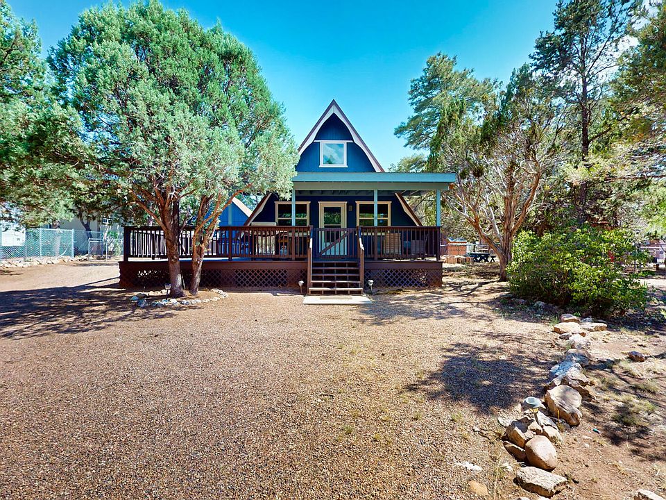 Come see the cutest A- Frame cabin in the desirable area of Overgaard that is perfect for full or part time living. This home is move in ready and comes fully furnished. With 1 large bedroom downstairs, a large loft upstairs that could be a second bedroom, office or game room and plenty of windows to let in the natural sunlight. New vinyl plank wood like flooring, a remodeled kitchen, new double pane windows, new paint and a new power pole. Enjoy a covered front deck in the mornings to drink your coffee and a large covered deck in the back perfect for entertaining, relaxing and enjoying the four seasons. There is a storage shed, plenty of room for a garden, a picnic table and fire pit area for the cold winter nights and NO HOA so bring all your toys and animals. Country living at its best with the convenience of groceries, restaurants and everything you need just minutes away. Plenty to do with fishing, hunting, golfing, kayaking, skiing, hiking, horseback riding, rodeo grounds, a casino, shooting ranges and so much more right outside your door. Come start living the good life! SF DOES NOT INCLUDE LOFT.