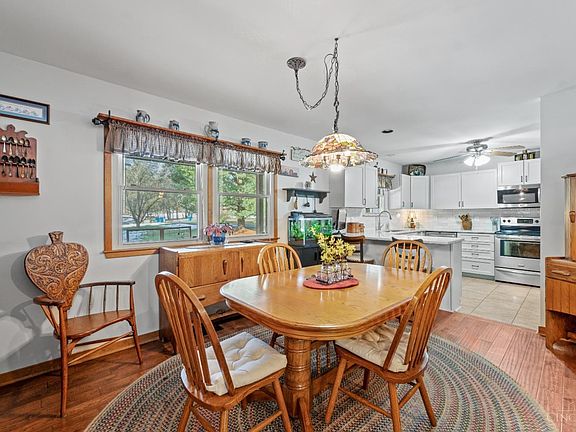 Home Sweet Home! This home checks all the boxes with 4.34 acres, 3 bedrooms, 3 full baths, stone fireplace in living room with vaulted ceilings, 4 season room w/private view of flower and veggie garden, Completely updated kitchen with granite counter tops, tons of cabinets, SS appliances and more. Hall bath with updated walk in shower. The first floor laundry just off kitchen and steps to garage makes a perfect mud room. First floor also offers hardwood floors through out. over sized 2 car garage attached to home and a 24 x 40 pole barn is perfect to store all your toys with a circular drive for easy access. Furnace 2014, roof 2009, Champion windows and 4 season room 2015, hardwd floors 2025.