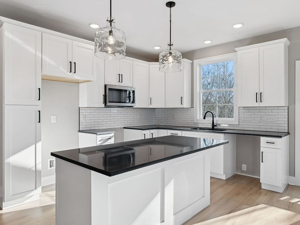 The gourmet kitchen impresses with gleaming granite countertops, stylish tile backsplash, and stainless-steel appliances. The luxurious primary suite serves as your own private sanctuary, boasting a walk-in closet with custom wood shelving and a spa-inspired bathroom featuring a tiled shower and double vanity with granite countertops. Secondary bathrooms showcase a tiled surround tub/shower combo and the same attention to detail found throughout the home. The thoughtfully designed, functional layout is perfect for modern living, with convenient second-floor laundry and an attached one-car garage.