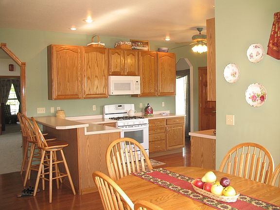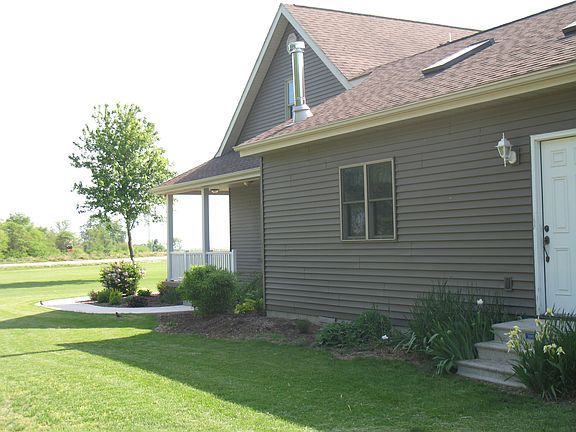 Beautiful country home with wrap-around porch on 10.85 acres that is bordered by a wooded area and stream. Two-story, 3 bedrooms, 2 full baths and 1 half bath. Features include an amazing great room with a large fireplace, soaring cathedral ceilings and floor-to-ceiling windows designed to take in the views of the property. A large master suite with adjoining full bath is located on the main floor. Up the beautiful oak staircase there are 2 spacious bedrooms, a full bath and a bonus room that overlooks the first floor great room. The kitchen has a breakfast bar and eat-in area surrounded by floor-to-ceiling windows. Appliances include convection oven, microwave, refrigerator and dishwasher. Also a separate office, laundry room and a foyer with large patio doors that open to the expansive back yard. Enter the huge rec room off the great room where you will find a 2-story partial basketball court as well as tons of carpeted space and a fireplace. Patio doors off this room also lead to the back yard. A second driveway and private entrance to this room would make it ideal for a home business. Remodeling has been started in this space-a half bath has been roughed in but is unfinished. Home has an oversized 2.5 car garage with unfinished loft/2nd story. The property also includes a machine shed with a loft-the shed would hold up to 4 vehicles. Main portion of the home is heated/cooled by HVAC system, but is designed so that the living room fireplace will heat the home if you prefer. The rec room is heated by a fireplace and cooled with window AC. This home has had all new carpet, paint, appliances, etc in the last 6-7 years. The rec room is the only space where remodeling was not completed yet. Other recent updates to the home include beautiful and extensive landscaping and sidewalks, driveway and basketball court in the front yard and a large treehouse that overlooks the creek and swing that allows the kids to swing over the creek.