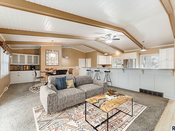This mid-century modern feeling home has it all: over 3,000 square feet - 3 bedrooms on the main level (including a master suite), a huge great-room with vaulted ceilings that is open to a large kitchen and dining space and main floor laundry (with laundry hook-ups in the lower level as well). Downstairs you’ll find a walk-out basement with 2 additional bedrooms and a bathroom, a wood burning fireplace, a wet bar, and tons of storage. There is even a separate room that would make the perfect office, toy room, or music room! Entertain your guests on the large pergola covered deck or place a hot tub on the large concrete pad under it! Recent repairs include windows and siding (2014), new shingles (2019), new gutters (2023) and new 75 gal water heater (2017), and a Kinetico water softener. This home is in the perfect location, close to schools and parks with easy access to any major street in the city!