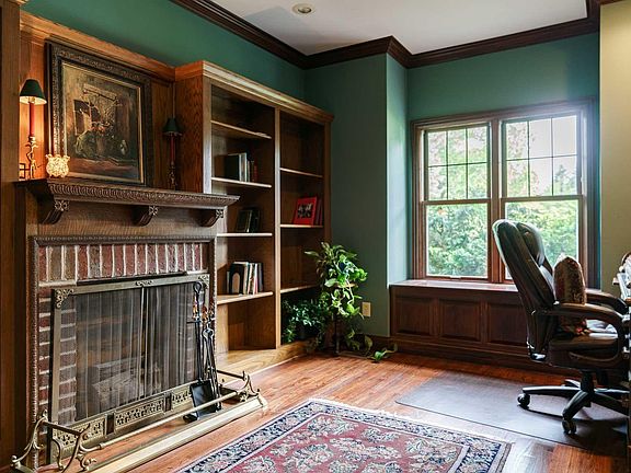 Desirable Barrington Estates! PHM Schools and city utilities. Gated community with beautiful tree-lined streets near restaurants, shopping, Capital Ave, Mishawaka downtown and more! Quality, custom-built, one owner home with 4 bedrooms, 3 1/2 baths and 3 fireplaces. 9 foot ceilings on 1st floor and basement. Solid oak floors on main level rooms. Custom stained solid poplar wall panels, doors, crown molding and baseboards throughout. Fantastic, open, family room and eat-in kitchen with beamed ceilings, fireplace, breakfast bar, Hickory cabinets, granite countertops, SS appliances and a slider door to wood sided, 3 season enclosed porch and deck. Living room with fireplace, wainscoting and wonderful windows. Den/library with bookcases and decorative fireplace. Large master bedroom with tray ceiling, walk-in closet and private bath with deluxe walk-in shower with multiple shower heads, sky-lite, double sinks and more. 2 other 2nd floor bedrooms with walk-in closets and Jack 'n Jill bath. First floor laundry / mud room plus a basement laundry. Walk-out finished lower level includes family room with fireplace, den/office, bedroom and full bath - plus tons of storage. 2 newer Hi-efficiency furnaces and 2 newer central air conditioners. New roof in 2019. Big, natural yard with large trees. 3 car garage with 3 openers and 3 new, overhead doors. Covered front porch.