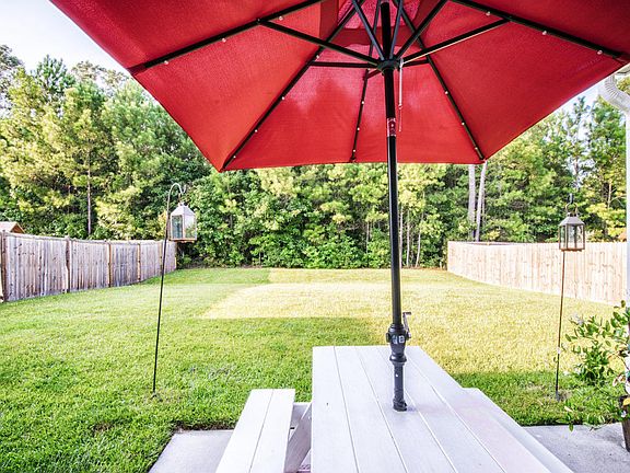 What a Great Place to Call HOME! This Beautiful, Move-IN Ready 5BR/3BA home is conveniently located in the premier community of Carolina Bay. No waiting to build, Move in Today! This great OPEN FLOOR PLAN has lots of space, third floor provides 500sf area that can be used for additional storage; 2-car garage, patio, large back yard and backs up to wooded area which provides additional PRIVACY; SECURITY system; IRRIGATION system, transferable TERMITE BOND and HOME WARRANTY; Home features a downstairs bedroom and full bath with natural travertine stone flooring that is great for your guest; Beautiful HARDWOOD FLOORING on 1st level, SPACIOUS living area, dining area, Study and relaxing SUN ROOM. Upstairs you find a large master suite, tray ceiling and walk-in closet;