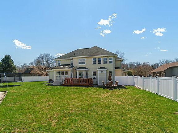 Woodridge Estates 5 bedroom 4 bath 3 car garage with over 4,000+sq ft of finished living space! Why build? Incredible value at $90per foot! 2 story foyer with formal dining and office/den to each side. Open concept first floor has large living room with soaring ceilings, gas fireplace, and an abundance of windows allowing for natural light. Eat-in kitchen features solid surface counters, stainless appliances, center working island, double oven, pantry and tiled backsplash. Desirable sunroom with skylights off rear partio deck, first floor laundry and 2nd 1/2 bath on main. Master suite offers his & hers walk-in closets, soaking tub, and tiled shower. Finished lower level has wet bar, rec room, 5th bedroom, and bath with Kohler steam shower. Fenced yard and located at the end of a cul-de-sac