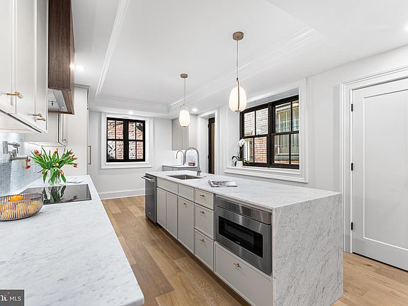 Stunning 4-bedroom, 3-bathroom, completely renovated townhome in the heart of Rittenhouse Square offers 2,444 square feet of luxurious city living, thoughtfully designed with high-end finishes and an open, light-filled layout. Step inside to find the stunning wide-plank hardwood floors and a seamless flow from the open living room—featuring elegant inset bookcases and a striking stone gas fireplace—through to the dining area and chef’s kitchen. The gourmet kitchen is a showstopper with a large waterfall island with seating, top-of-the-line appliances, and a built-in wet bar—perfect for entertaining. Custom Hunter Douglas remote control window treatments throughout. Upstairs, the serene primary suite features a vaulted ceiling, a spacious walk-in closet with a dressing area, and a spa-inspired en-suite luxury bathroom complete with a double vanity, a frameless glass shower, and a soaking tub. Three additional bedrooms share a stylish full hall bath with a tub. The finished lower level offers incredible flexibility as a family room or guest suite and includes a sleek third full bathroom with a walk-in shower. Cap it all off with a rooftop deck that delivers breathtaking panoramic views of the city skyline—ideal for relaxing or hosting guests. Located in the sought-after Greenfield School catchment and just steps to Rittenhouse Square, premier dining, shops, and beloved city parks. 10 year partial tax abatement. Luxury, space, and location—this gorgeous home truly has it all.