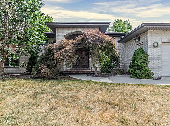 At the top of the Court sits this custom built, 4 bedrooms, 3 full bath, one owner home by builder, Carl Hill. As you approach this home, you will notice this all brick Mediterranean style with oyster white brick pillars housing the mailbox and the yard lamp. The bricked arch entry onto the tiled portico is flanked by mature Japanese maples and a set of solid mahogany double doors greet you with their concentric circle design. As you enter the foyer of this 2485 square foot home, you are met with solid oak floors throughout; the foyer being marked with a mariner's star composed of a variety of fine woods. On either side of the foyer are the formal gathering/office/ dining space; these rooms are closed by a pocket door and a set of 12-panel French doors. Just beyond the French doors, you enter the open Great Room with 12 foot ceilings. To your right is the open kitchen, distinctively marked by an 11ft x 5ft island that seats five comfortably with storage underneath. The kitchen also boast Amish made Plank's Custom Cabinetry from Arthur, IL, a large corner pantry with a glass door and accent backlighting. To your left is the Family area with an entertainment wall and fireplace that becomes the focal point of the living space. The Breakfast area has plenty of room for hosting and is lit with southern exposure natural light by the wall of windows overlooking the outdoor entertainment space. The east wing houses two bedrooms and a full bath that is sequestered from the remaining house by a pocket door. This area and the separate guest bedroom and full bath are all in zone 2 of the HVAC system. The west wing houses the Main Suite. It is this set of rooms that speaks to the future comfort of its owners. Entering through double doors, there is an ample sized bedroom, a large tiled bathroom with double sinks and a makeup area, as well as a water closet, and a walk in closet. The backyard of this gem has a singularly designed composite deck and expansive concrete pads for outdoor entertaining. With no direct neighbors behind you, this home offers the privacy, style and comfort you will appreciate. The oversized 20 wide by 33 foot deep garage provides space for up to 4 cars. Schedule your private showing today!