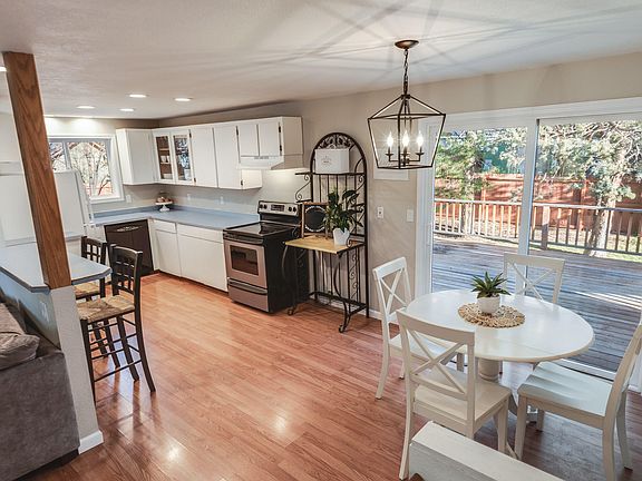 Have a Merry Christmas in your new home on Mistletoe Court!!This home lives large and is an open floor plan with new interior paint, new windows and slider, newer lighting, newer woodstove, new hardware on doors, newer roof, and easy to clean laminate flooring. The lovely spacious yard is .18 acre, fenced and secure for dogs, and has a garden area, covered patio area and sprinkler system with so much space for your toys. The cul-de-sac location provides an awesome view of Pilot Butte and the fireworks on July 4th! Close to shopping, medical facilities, and restaurants. County records show it as a 2 bedroom but the 3rd bedroom can be the downstairs office- just add a closet!