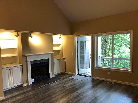 Cozy and quiet two bedroom, two and a half baths plus office at the Village at Forest Heights. Large vaulted ceiling living room and dining room. Gas fireplace, private deck facing peaceful forest, over sized garage. Walk to mall and Forest Heights trails. $2650/month lease, minimum one year. No smoking.