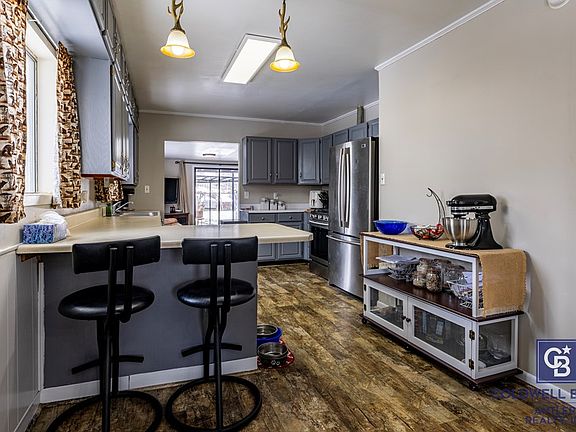 Spacious 5 bedroom / 3 bath home with over 2,400 sq ft of living space located in the western town of Meeteetse with historic buildings, hitching rails and water troughs. This home is gem located about 20 minutes from Cody. The home's interior features updated bathrooms and flooring, stainless appliances and metal roof. The exterior boasts of a deck and covered patio for entertaining. Enjoy the mature trees, shrubs, rosebushes, as well as the garden and greenhouse. Detached two-stall garage and off-street parking. Lots of space to relax or entertain - all with mountain views AND priced to sell! Call today.
