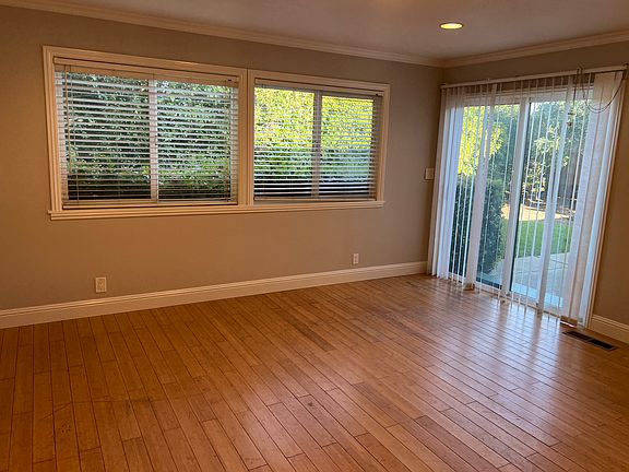 Family-friendly home in a prime location, private backyard with thick green grass and plenty of patio space for outdoor furniture, sliding doors to yard from kitchen and dining room, many windows facing greenery, all mirror closets, hardwood and tile floors (no carpets), fully finished two-car garage with extra sinks and plenty of wooden cabinets, living room with fireplace, kitchen attached to cozy family room, separate formal dining room, and new paint throughout the house. Walking distance to DVC and K-12 schools. Extra sloping path to College Park track and open space. View the Fourth of July fireworks from the backyard. Comes unfurnished. Utilities and yard maintenance not included. Families or group of college students are welcome.