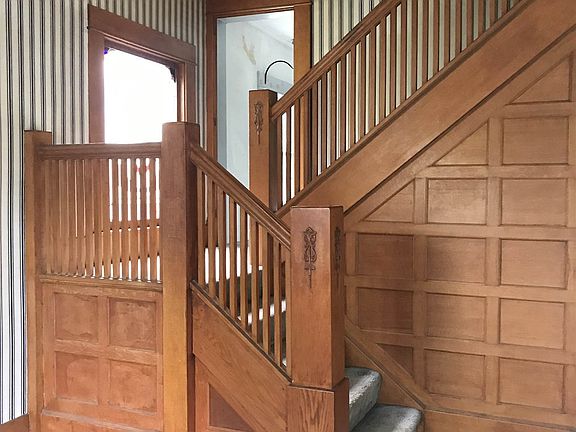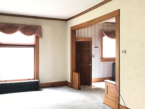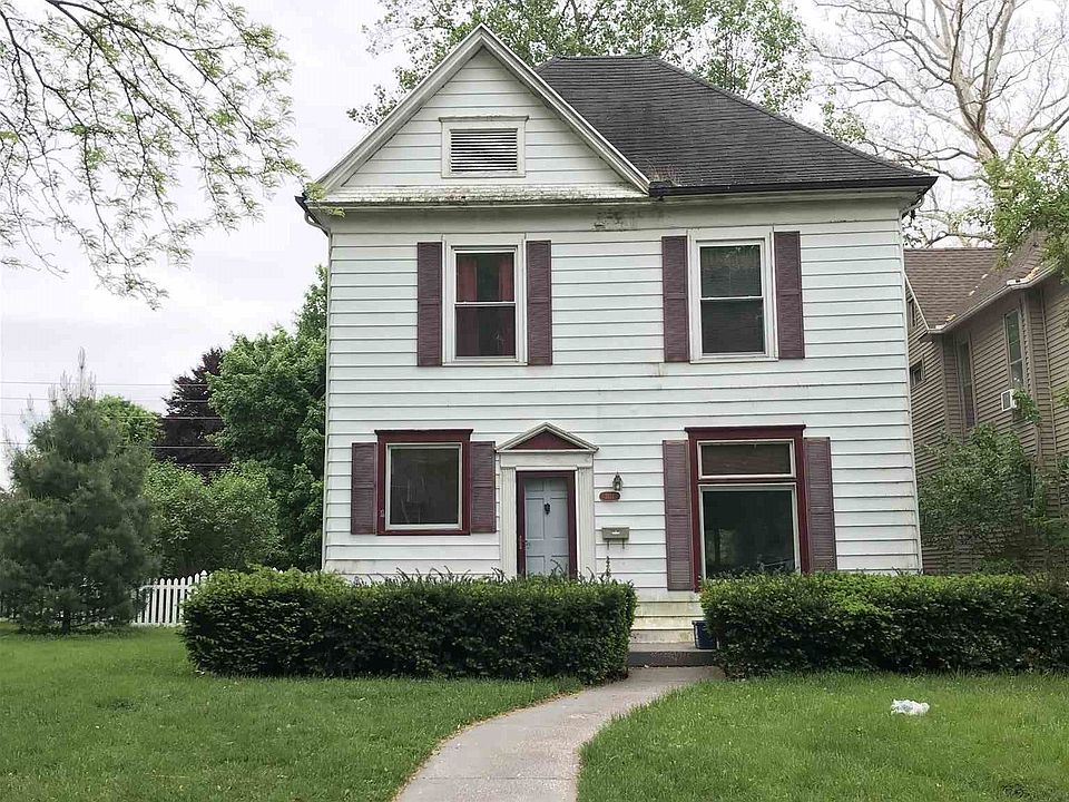 Lovely victorian home with leaded glass windows throughout. Lots of natural woodwork, outside features a brick patio and sidewalk to the oversized 2 car detached garage. Tall ceilings throughout the main level and upstairs, open stair case and plenty of room to entertain. There is no current heating or cooling source in working order, come with your ideas and make this house your home. There are three large bedrooms located upstairs and the master bedroom features a bonus sun room. Some vinyl replacement windows, fenced in backyard with partial privacy fence and a newer gas water heater in the basement. Home selling as-is.