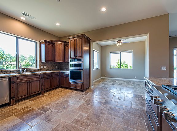Stunning new construction build by high quality builder with 10 foot ceilings, over 11 ft in garage, gorgeous Knotty alder front door, solid stone flooring, custom Alder cabinets w/ soft close drawer guides & doors, Stainless apps, granite throughout, 2 heating & air systems, tankless water heater, whole house fan, Milgard dual pane windows, smart home wiring. Beautiful solid covered patio for entertaining, front yard has gorgeous landscaping with artificial turf. Plenty of room for RV parking, pool, etc.