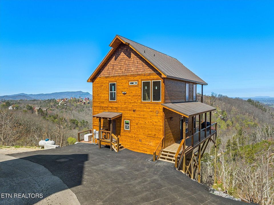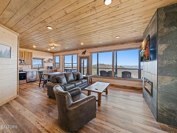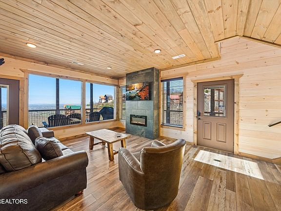 Incredible Mountain View's and Easily Accessible!!! This Builders Very Own Custom Built Cabin has all the Extras that you won't find in other spec built cabins and that you are sure to Enjoy!!! Definitely not a cookie cutter. This is a New Construction 2 Bedroom 2 Full Baths Cabin located in the Eagle Crest Subdivision. Modest gross rental projections of $78,200-$91,000 per year are in documents. This Cabin can sleep 8 guests with ease. Being sold fully furnished!! This Custom Built Cabin features 2 Levels of Decks that have BREATH TAKING VIEWS !!! There is Level Parking and Please Take Notice that there is an ELECTRIC VEHICLE CHARGING STATION for you TESLA OWNERS as soon as you pull up. NEVER WORRY about power outages because you have a huge propane powered GENERAC GENERATOR to run your entire cabin and keep you warm and cozy with the lights on!!! Easy Access to 2 split Heating and Air Units (TRANE) from the platform from main level so there will be no repelling down a mountain to service anything!! Two points of ingress and egress from the front on main level with only two steps to walk up! Walk into the main level and Immediately Notice those Magnificent Mountain View's from the oversized floor to ceiling windows. We're Talking View's for Miles that you can enjoy from the Cozy Comfort of Inside your cabin!!! This Cabin Features Luxurious and Expensive ''LVP'' Flooring that simulates wood floors but without the maintenance!! Beautiful tongue and groove woodwork, recessed lighting, high ceilings, wall mounted electric fireplace with custom tiled surround, all new luxurious furnishings including a sleeper sofa on both levels for additional guests are just some of the features. This cabin is pre-wired with surround sound speakers (inside and outside cabin), pre-wired for security cameras and for alarm system!! The Spacious open concept on both levels will allow for entertaining lots of guests.