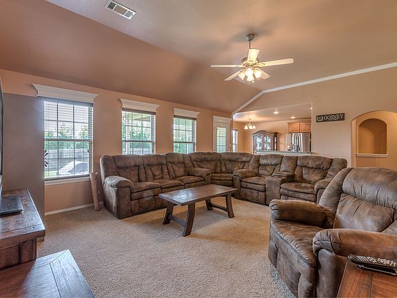 Beautiful move in ready home in a sought after neighborhood with fully fenced in back yard, covered patio, 3security cameras. New carpet, tile and light fixture updates in 2020, granite counter tops in the kitchen. Hot watertank replaced in 2017, 1 year home warranty. 5 minutes to Skiatook lake, minutes to Hwy 75 and 25 minutes todowntown Tulsa. This won't last for long