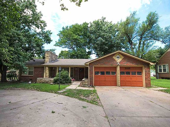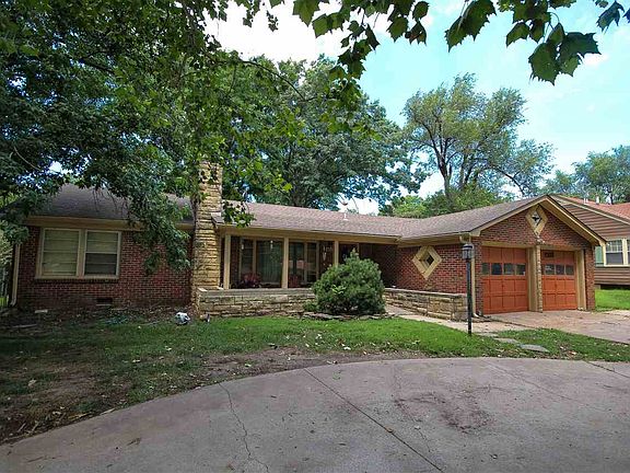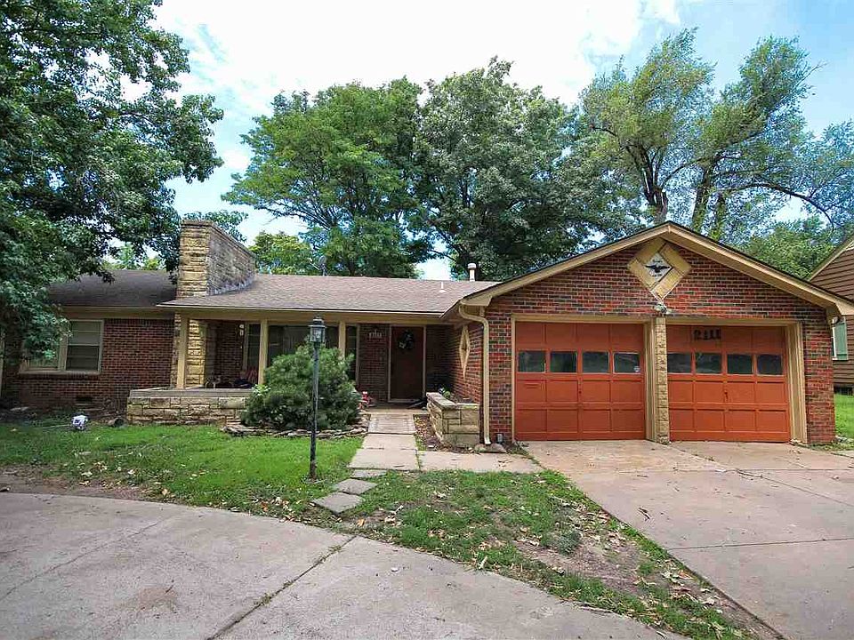 Lovely All Brick Home with a circle-drive in southeast Wichita! This home offers 3 spacious bedrooms, 1.5 baths, two car attached garage and main floor laundry, all in a conveniently located, established neighborhood. From the inviting, covered front porch you enter into the large living room that features a gorgeous Limestone fireplace (two-way) for those chilly Kansas nights, as well as a large window for great natural lighting. Moving into the formal dining area you will find beautiful wood flooring and a wonderful glass door opening up to the back deck. The large kitchen offers wood-laminate flooring (for easy clean-up), a wonderful eating bar, tons of counter space, lots of cabinets (with roll out drawers), a fabulous pantry (with roll-out drawers) and even a space for an eat-in area as well! The master bedroom features the other side of the 2-way Limestone fireplace for cozy evenings in bed. The two additional bedrooms are spacious and having 1.5 baths is a bonus for all. The backyard is wonderful with mature trees and a fenced yard for the privacy you desire to enjoy as you sit on the wonderful wood deck. This home is just waiting for you. Set up your showing today!