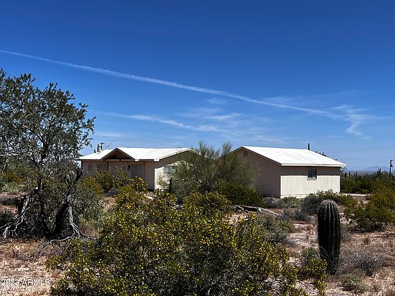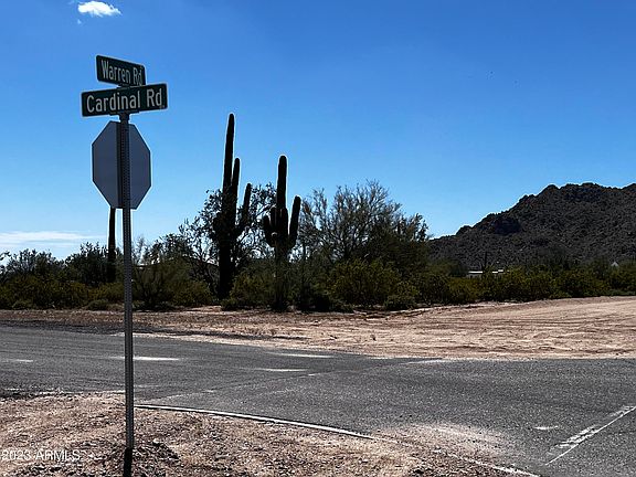 Located away from the hustle and bustle of the city, this 3.32 acre property has beautiful views of the surrounding mountains with large Saguaro Cacti, beautiful sunrises and sunsets and a view of the city lights at night. Bring your horses and enjoy the privacy a larger parcel brings. This comfy 2 bd/2ba home has a separate 2 car garage you can access from the back patio. Property has power hookups for RV, a storage building large enough for the RV as well as additional storage for your lawn/yard/tack equipment. Well water to property. Access to property is available from Cardinal Rd. & Warren Rd. PROPERTY IS BEING SOLD IN AS-IS CONDITION.